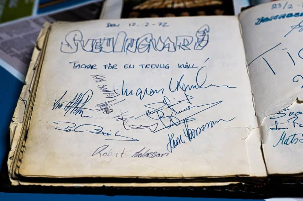 – Med kassaskåpet försvann våra fem, sex orkesterböcker, där alla artister som uppträtt på Granada har skrivit hälsningar. De första var från 40-talet, det var alla de stora – Harry Brandelius, Povel Ramel, Kalle Jularbo, Karin Juel, Ulla Billquist, ja, alla, hela vägen fram till idag, säger Göte.