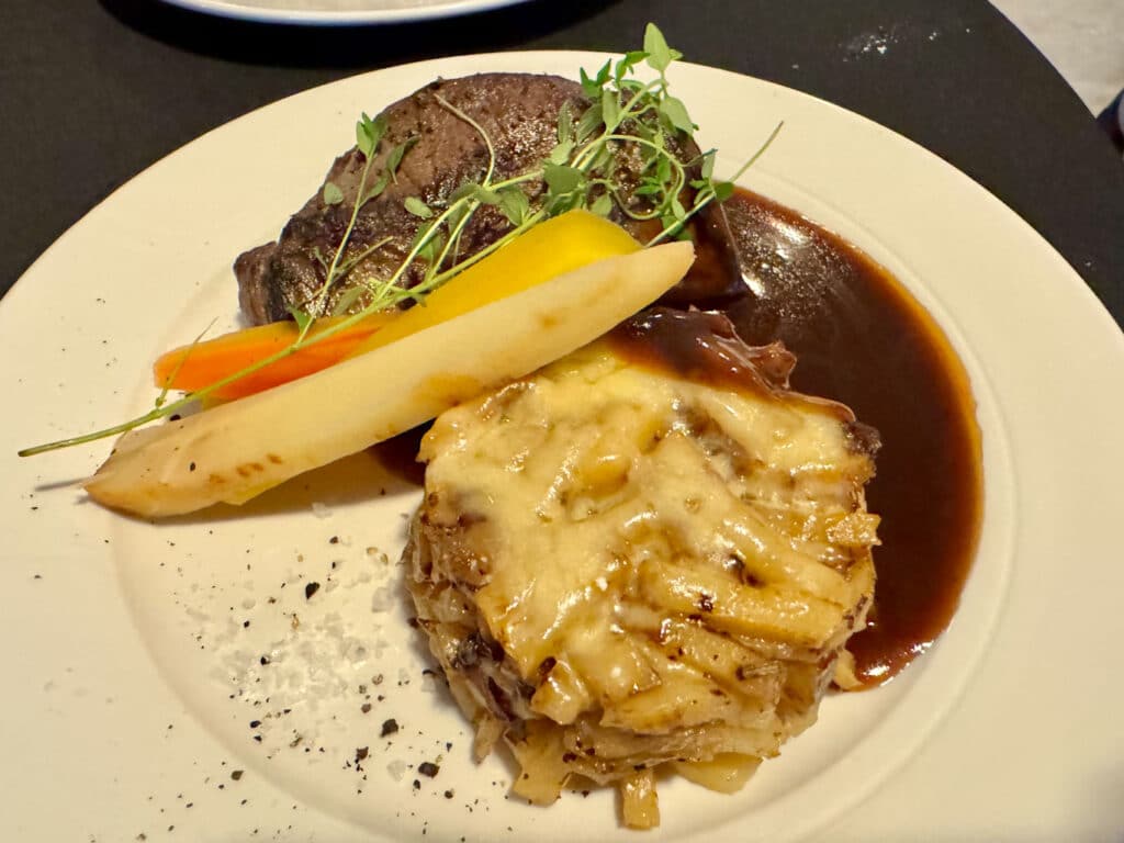 Kl 19.16: Nu delas huvudrätten ut – kronhjort med potatisbakelse.